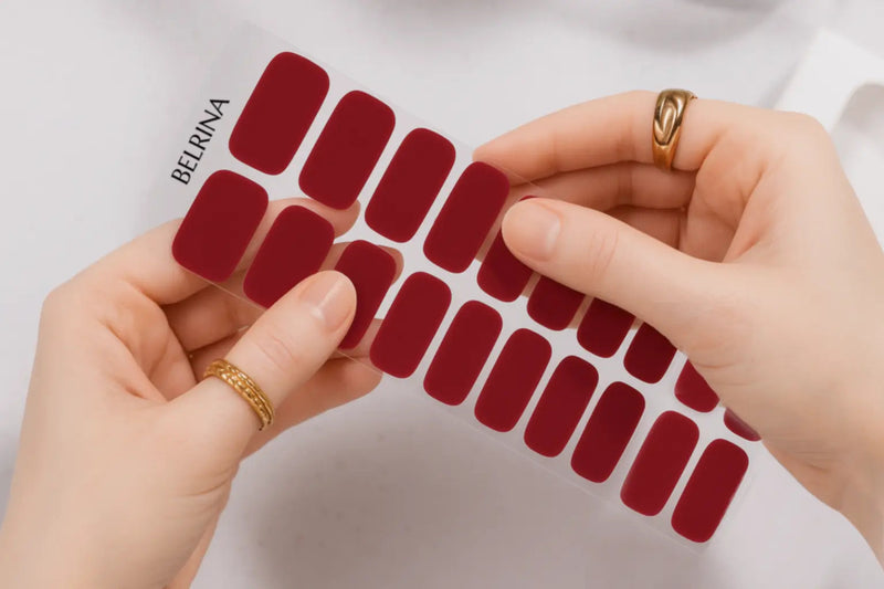 Consejo: Estira la tira suavemente para que coincida con la forma de tu uña antes de aplicar para un ajuste perfecto.