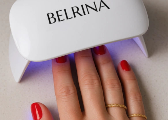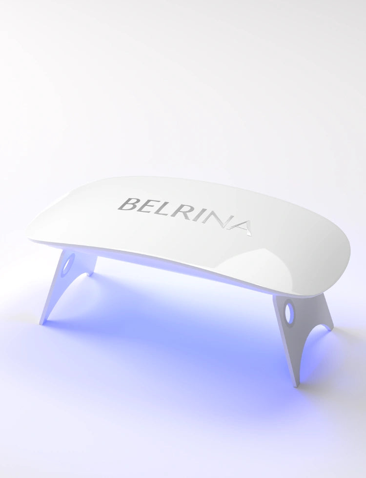 Puedes usar cualquier lámpara UV compatible, pero para conveniencia y resultados óptimos, recomendamos usar la lámpara UV Belrina. Es compacta, eficiente y diseñada tanto para uso en casa como en movimiento.