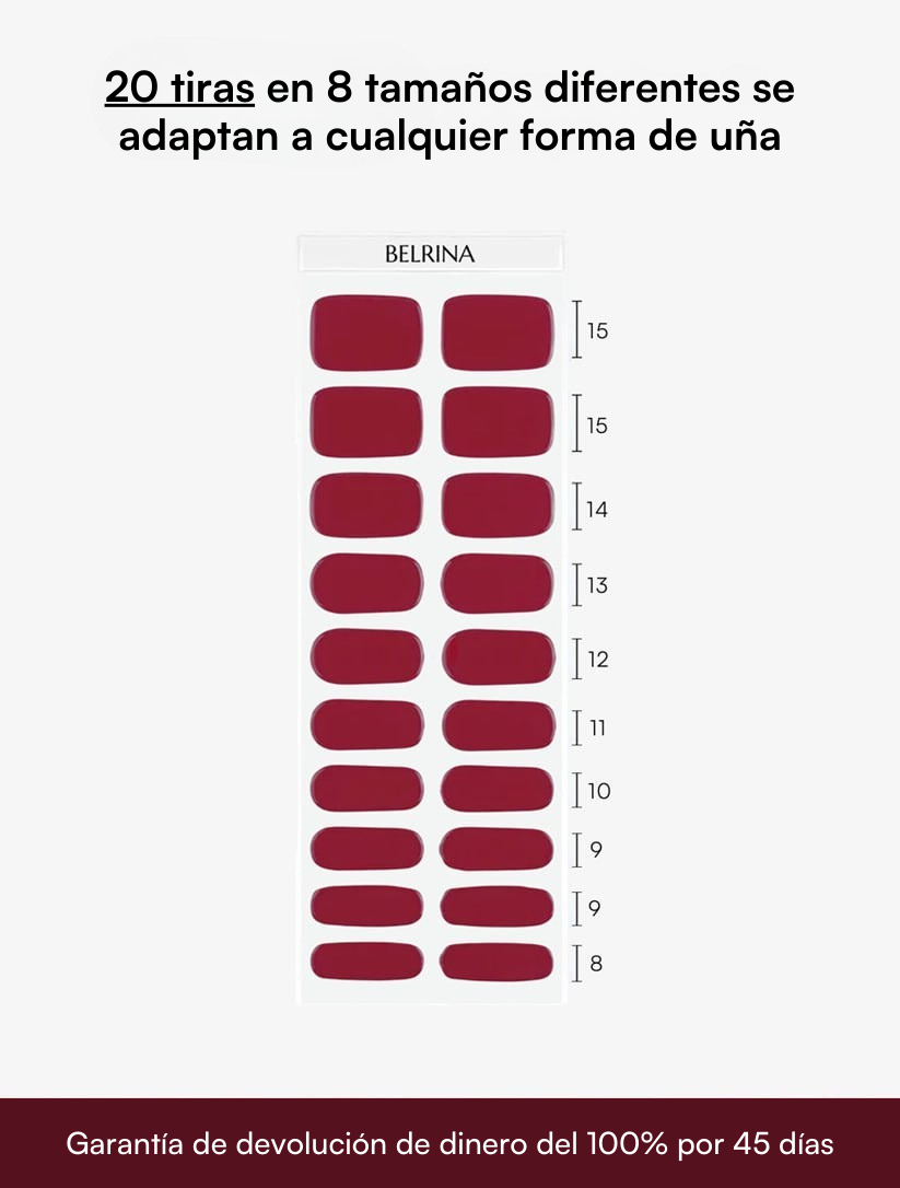 ¡Disfruta hasta 3 semanas de uñas impecables sin preocuparte por descascarillado o agrietamiento! Las tiras de gel UV están diseñadas para todos los tipos de uñas, incluyendo uñas cortas y frágiles. Las Belrina Uñas ofrecen estabilidad extra, asegurando que tus uñas naturales se mantengan fuertes y protegidas.