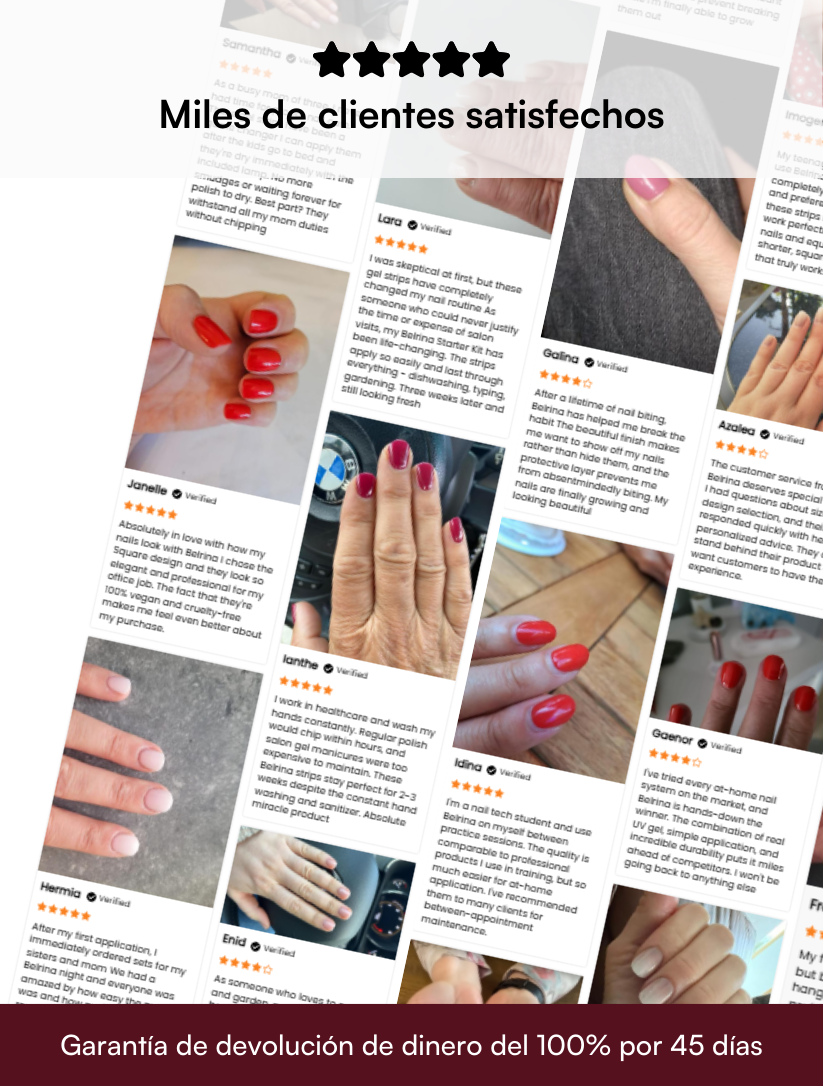 Prueba Belrina Uñas sin riesgo por 45 días. Si no estás completamente satisfecha, te reembolsaremos tu compra completa, sin preguntas.